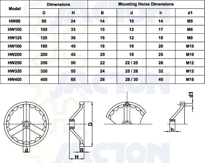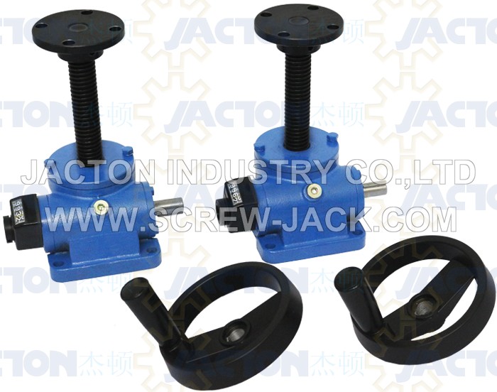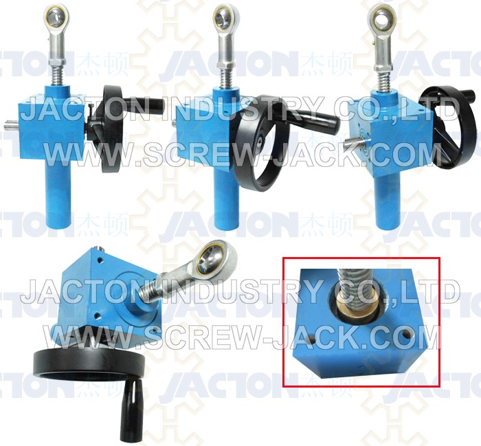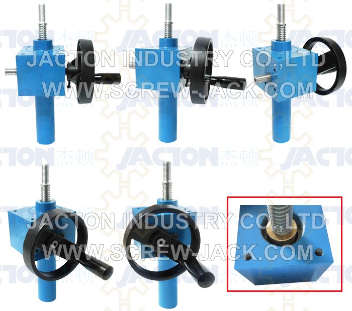mini worm gear linear actuator with hand wheel is composed of hand wheel or hand crank and a worm gear screw jack, which has intermittent precisely positioning and self-locking feature for no creeping down without brake mechanism or other locking systems, when manual ball screw jack, no self-locking feature, avoid ball screw back drive with attached load, which needs additional brake mechanism or other locking system to prevent it creep. Standard hand wheel dimensions from 80mm to 400mm diameter, larger diameter required, consulting JACTON.